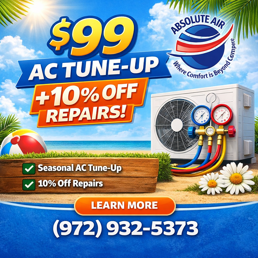 Absolute Air is a leading HVAC company in Kaufman, TX, delivering professional AC repair, air conditioning installation, heating services, and HVAC maintenance since 2009. We help homeowners stay comfortable through every season with dependable service, energy-efficient solutions, and expert system recommendations tailored to the unique demands of North Texas weather. From emergency AC repairs during peak summer heat to complete system replacements and seasonal tune-ups, our experienced technicians are equipped to handle all makes and models with precision and care.